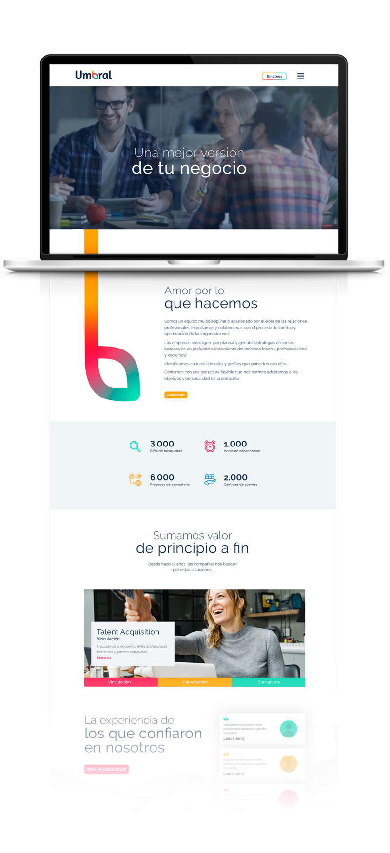 estadísticas de contratación de la empresa y los testimonios de los clientes.