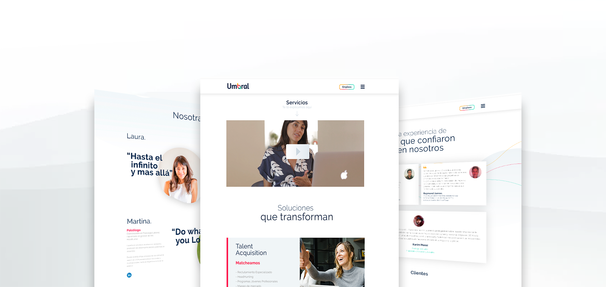 Umbral Capital Humano es una empresa de recursos humanos reconocida nacional e internacionalmente. Sus socios, nos pidieron y rediseño de logo y una web que hable de sus servicios, los roles y trayectorias de los socios y que sea una carta de presentación para nuevos clientes. El tono tenía que ser contemporáneo y expresar su estilo de trabajo “disruptivo”.
